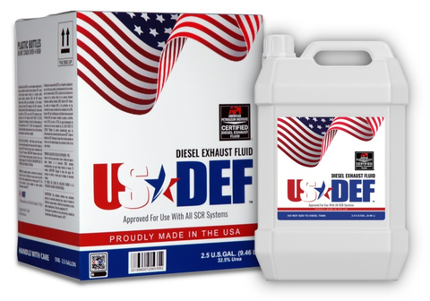 The same product delivered to our bulk customers is now available in bright, patriotically themed 2.5-gallon jugs (boxed with spouts). All our DEF meets the strict ISO 22241 standard. Made in the USA, US-DEF is competitively priced for both the wholesale vendors and the consumers.