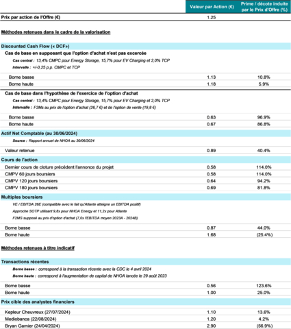 Le Prix de l’Offre proposé par l’Initiateur s’élève à 1,25 euro par Action. Sur la base des travaux d’évaluation présentés dans le Projet de Note d’Information, le Prix de l’Offre extériorise les primes suivantes :