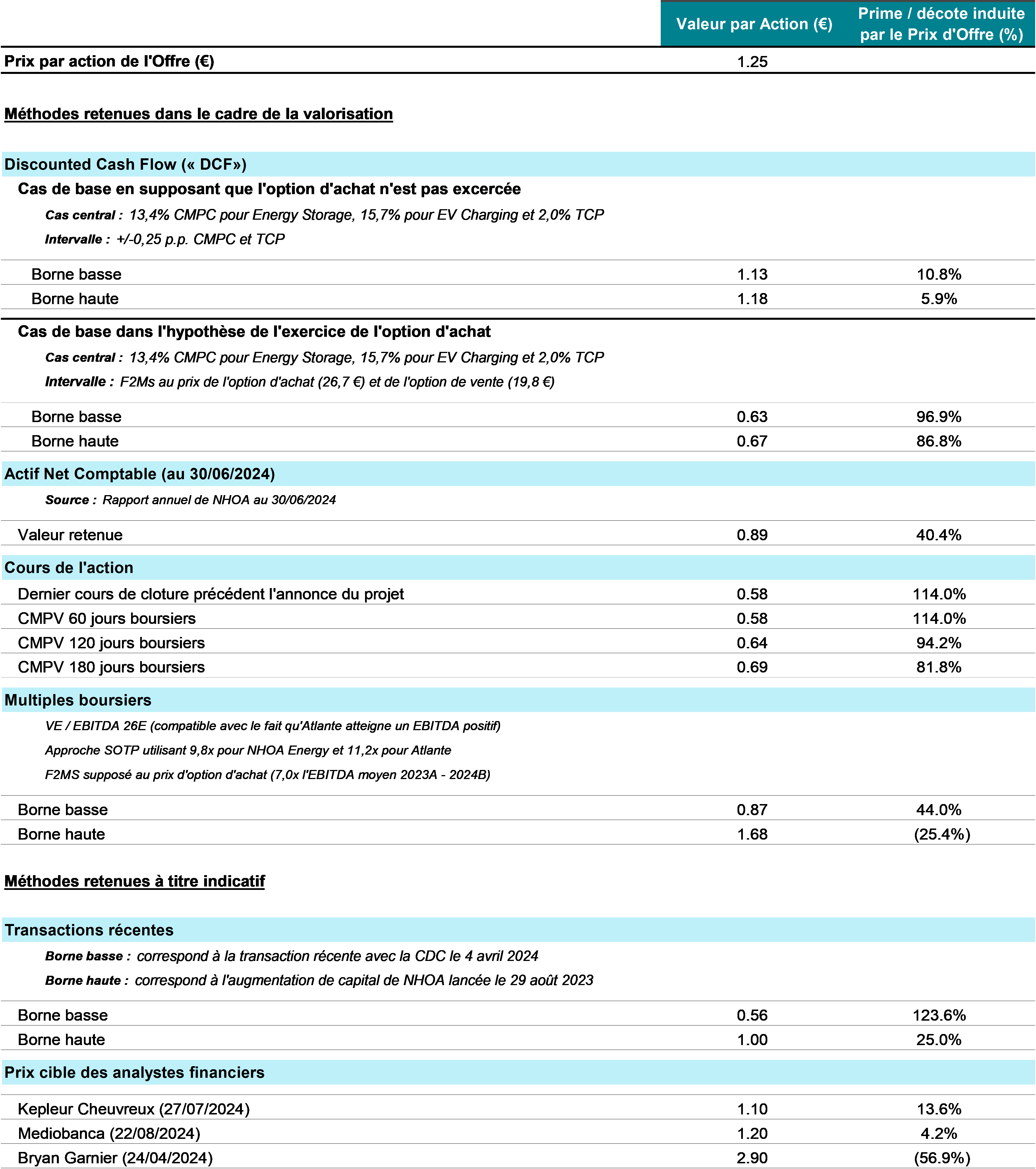 PRIX DE L’OFFRE : 1,25 euro par action NHOA