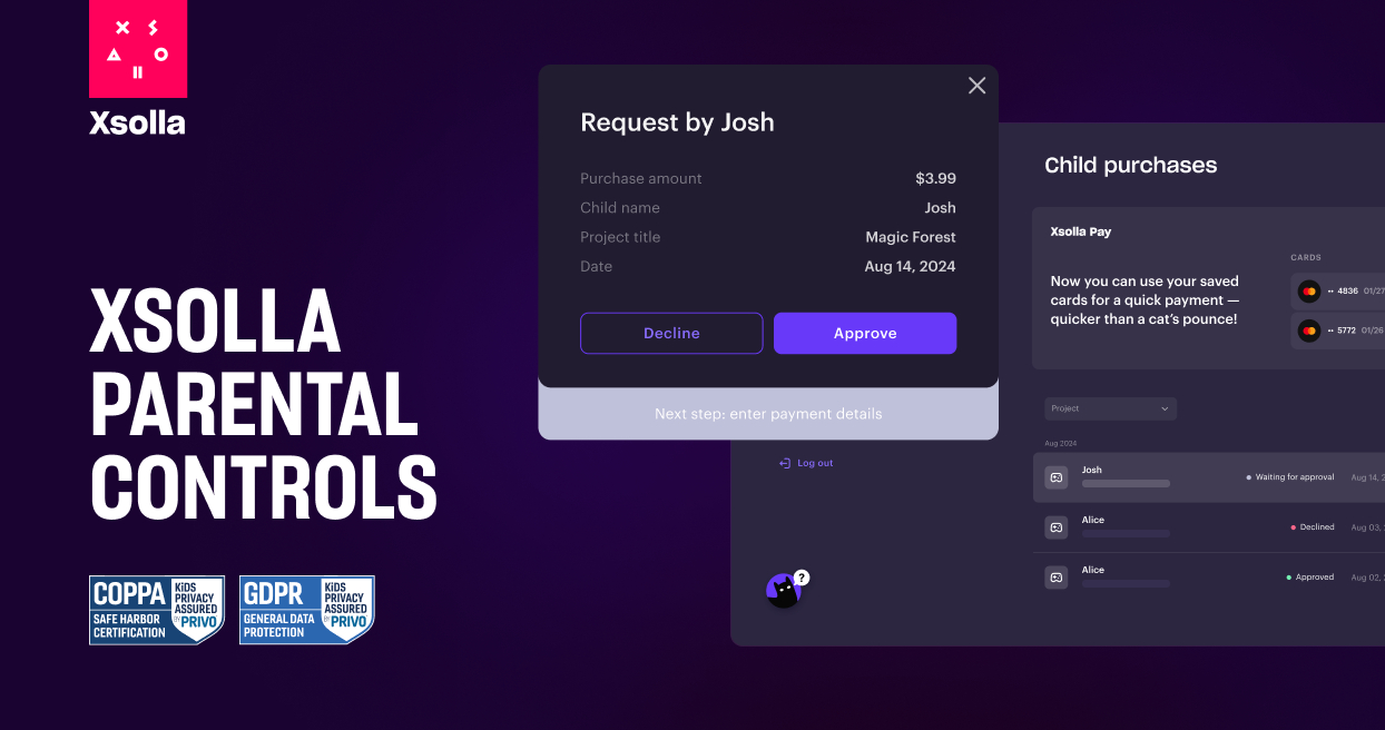 Řešení rodičovské kontroly společnosti Xsolla umožňuje vývojářům her dodržovat globální předpisy a zároveň poskytuje rodičům lepší přehled a kontrolu nad herními transakcemi. Integrací této funkce řeší Xsolla kritické obavy o ochranu dětí před neoprávněnými nebo nadměrnými nákupy a podporuje tak bezpečnější herní prostředí pro rodiny po celém světě.