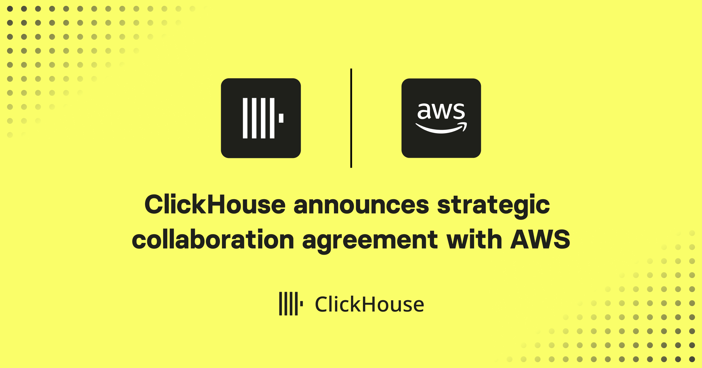 MOUNTAIN VIEW, Kalifornien--(BUSINESS WIRE)--ClickHouse, Inc., ein führendes Unternehmen im Bereich Echtzeit-Analysen, gab heute bekannt, dass es eine fünfjährige strategische Kooperationsvereinbarung (SCA) mit Amazon Web Services (AWS) unterzeichnet hat, die darauf abzielt, Innovationen in den Bereichen Echtzeit-Data-Warehousing, Beobachtbarkeit, Business Intelligence, maschinelles Lernen und generative KI-Lösungen zu beschleunigen.