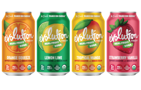 RANCHO CUCAMONGA, Calif.--(BUSINESS WIRE)--Evolution Fresh, a leading producer of organic, cold-pressed, premium juice products, today announced that four of its Real Fruit Soda flavors – Tropical Mango, Strawberry Vanilla, Lemon Lime, and Orange Squeeze – will now be sold nationally at select Whole Foods Market locations. Each Evolution Fresh Real Fruit Soda is made with organic, freshly squeezed fruit juice, never from concentrate.
