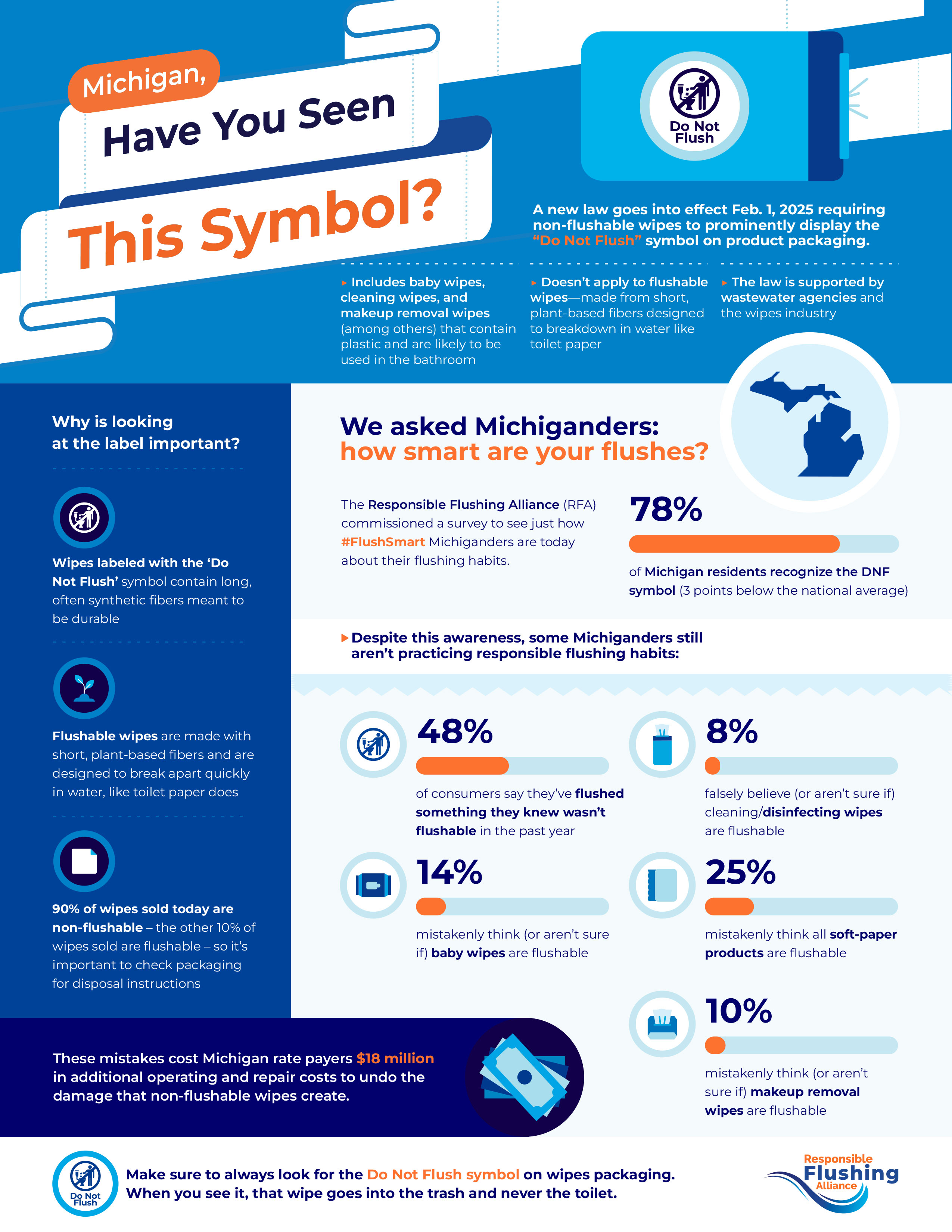 - 78% of Michigan residents surveyed recognize the “Do Not Flush” symbol