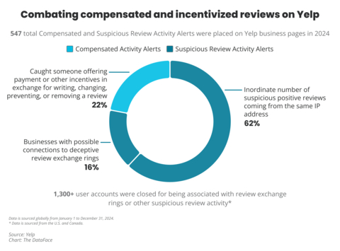 SAN FRANCISCO--(BUSINESS WIRE)--Yelp Inc. (NYSE:YELP), the company that connects people with great local businesses, today released its annual Trust & Safety Report, offering insights into the extensive measures it took in 2024 to protect the integrity and quality of content on its platform. The report details how Yelp enhanced its automated recommendation software to better surface the most reliable and helpful reviews, warned people about compensated and incentivized reviews through initiatives like a new Consumer Alerts History section on business pages, and leveraged AI to automate the identification of inappropriate content and bad actors for further evaluation. Yelp also outlines how it moderates business pages that gain public attention and takes action to protect consumers from abuse of the legal system, among other efforts.