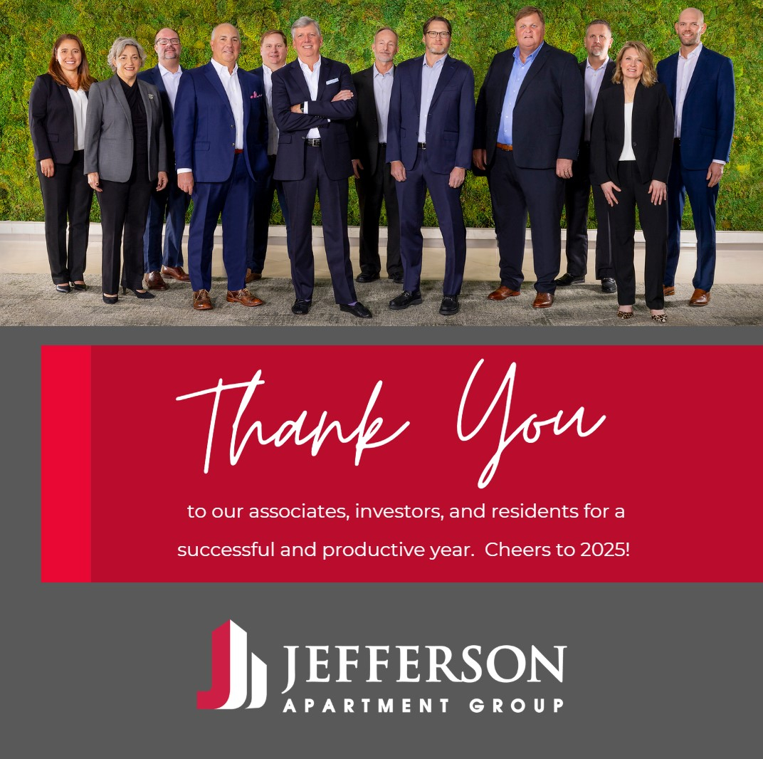 MCLEAN, Va.--(BUSINESS WIRE)--With a new year in full swing, Jefferson Apartment Group (JAG) – a leading developer and investor specializing in luxury multifamily and mixed-use real estate in high-barrier-to-entry markets on the East Coast – reflects on 2024, the 15th anniversary of the firm’s founding.