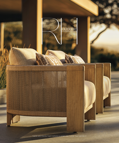Gracing the cover of the new Sourcebook, designer Mathias de Ferm (Belgium) introduces Striata in his first collaboration with RH. Defined by its sculptural barrelback silhouette, the collection is meticulously wrapped in handwoven all-weather rope, showcasing refined reeded detailing. A slender opening at the back allows for a whisper of light to stream through, offering a dynamic interplay of light and shadow.