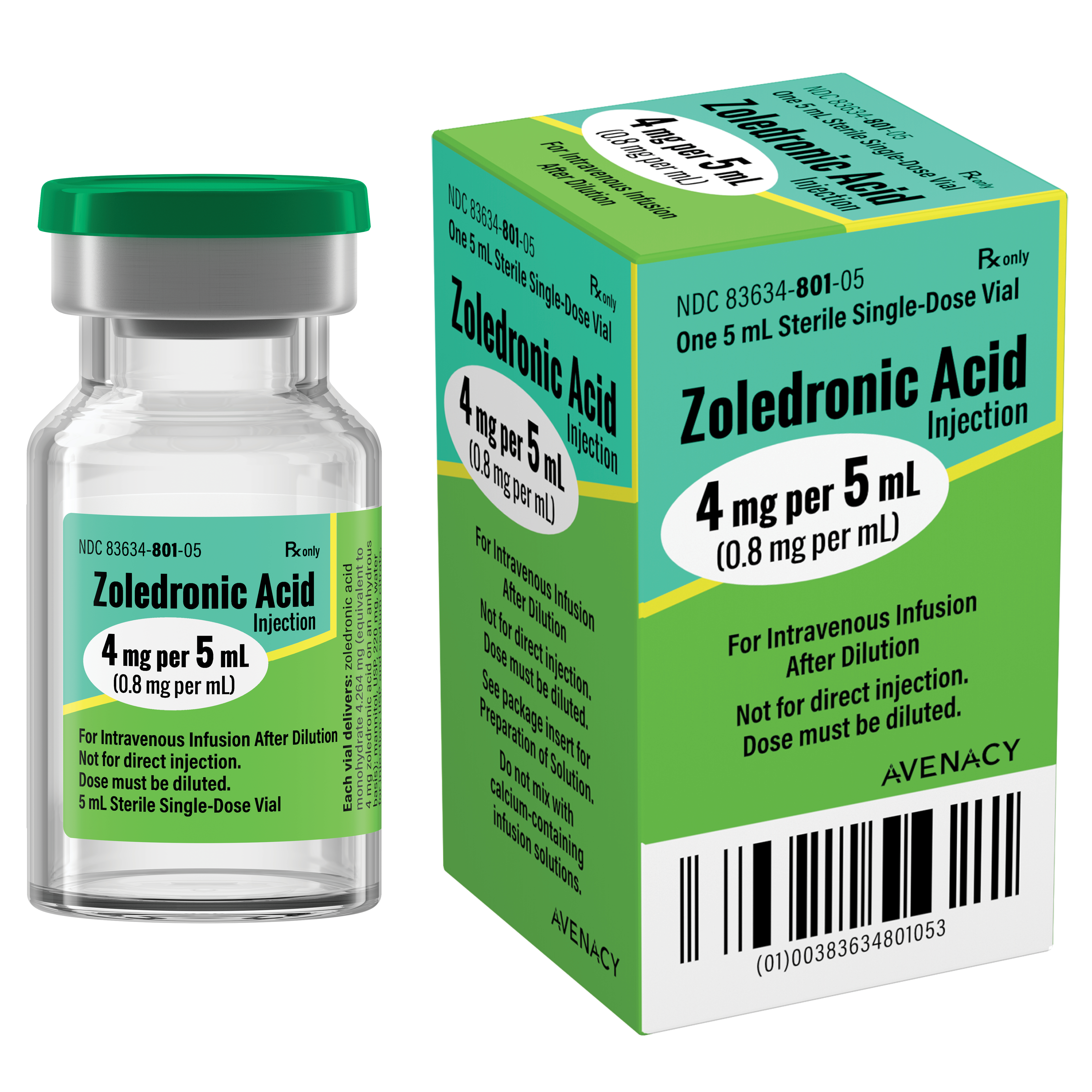 Avenacy's Zoledronic Acid Injection, USP is available as a 4 mg/5 mL (0.8 mg per mL) single-dose vial. In line with Avenacy’s mission to champion patient safety and streamline patient care, Zoledronic Acid Injection, USP will feature the Company’s highly differentiated packaging and labeling to support accurate medication selection.