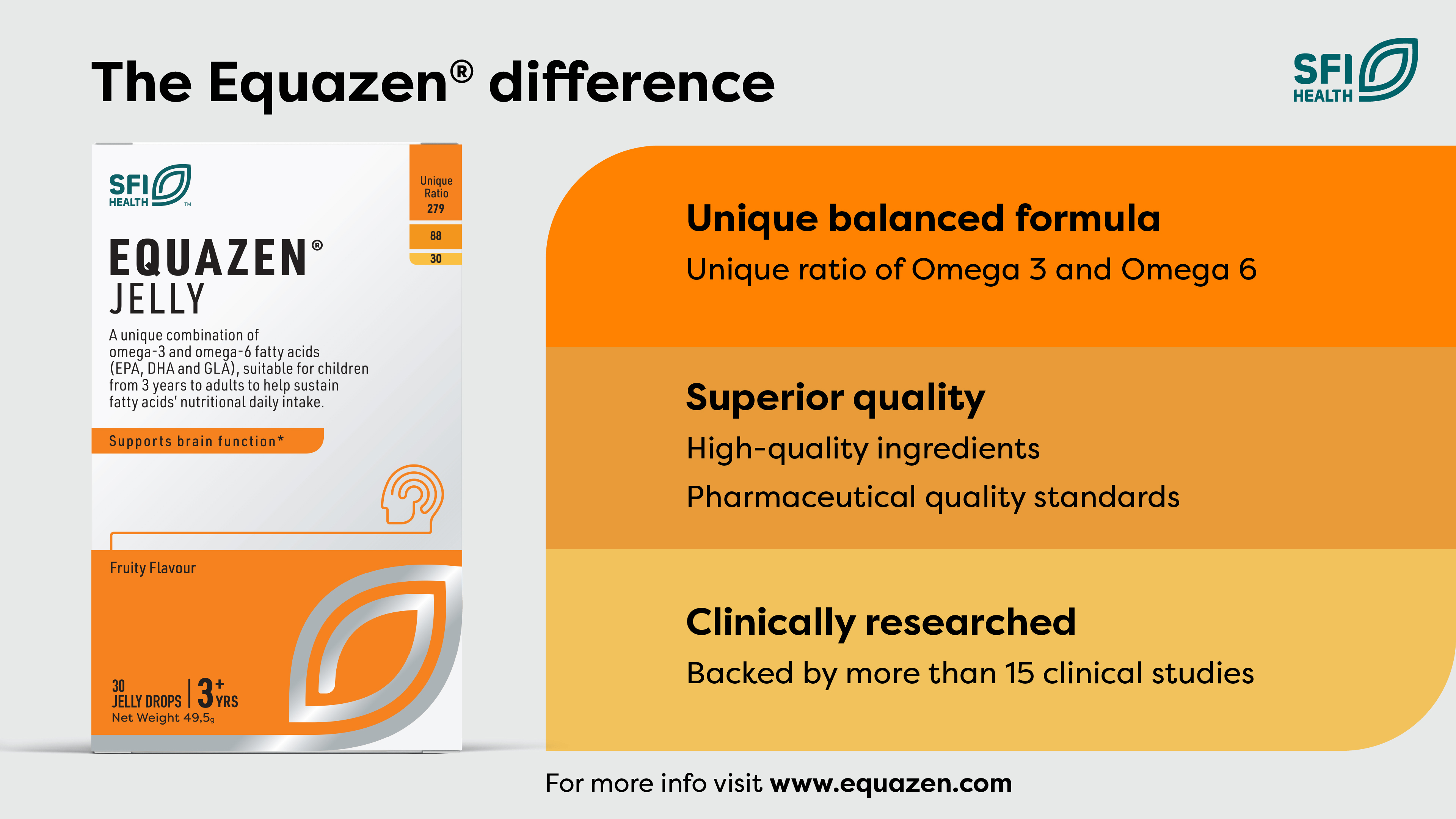 - L'azienda partner Eqyon Healthcare Solutions commercializzerà in farmacie e parafarmacie i prodotti Equazen®, basati su una combinazione unica di acidi grassi e clinicamente testati.