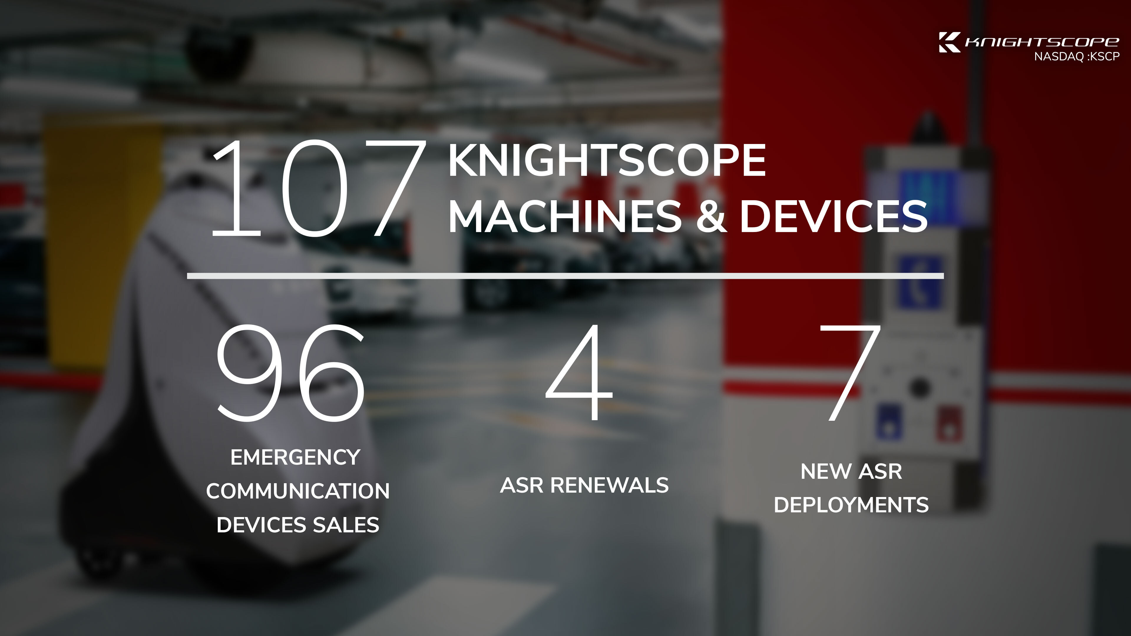 MOUNTAIN VIEW, Calif.--(BUSINESS WIRE)--Knightscope, Inc. (NASDAQ: KSCP), an innovator in robotics and artificial intelligence technologies focused on public safety, announced today the renewal of 4 Autonomous Security Robot (ASR) subscription agreements, 7 successful new deployments of ASRs, as well as new sales contracts for 96 Emergency Communication Devices (ECDs) totaling 107 Knightscope machines and devices in motion.