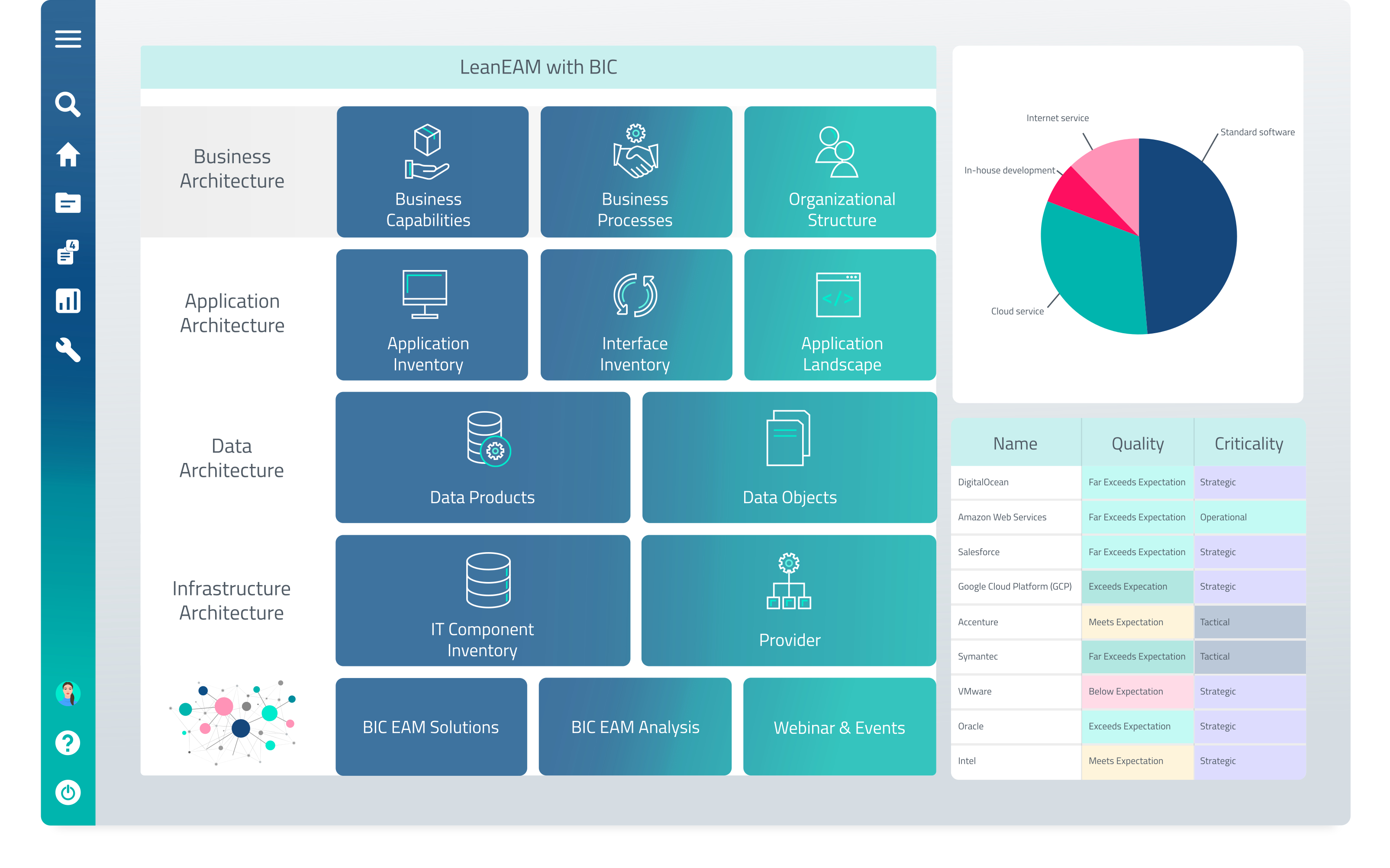 BIC EAM helps companies eliminate redundant IT systems, reduce IT risks, cut costs, and at the same time, drive innovation and sustainable growth. It supports a wide range of use cases, including application portfolio management, IT transformation and roadmap planning, IT rationalization and technology risk management.