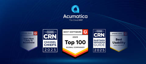 BELLEVUE, Wash.--(BUSINESS WIRE)--Acumatica, the leading cloud-based business management software provider, today shared the most recent round of industry recognitions, further validating its position as an ERP market leader. The company has been honored with top rankings in G2's competitive software reports and recognition in CRN®'s channel program reports.