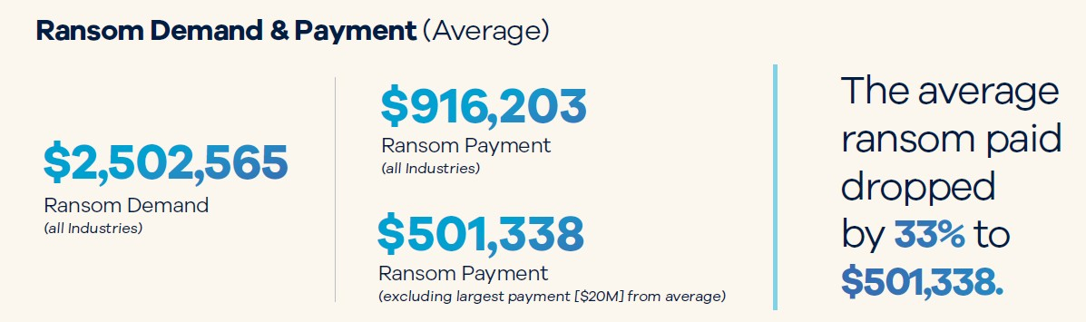 It is rare that our clients experience more than one ransomware attack. After more than five years of attacks, many organizations have experienced one and learned the lessons to prevent a second. Law enforcement continues to be effective at disrupting the operations of ransomware groups. The report shows that the most active groups rarely remain at the top for more than a year. Organizations are more resilient. With better backup strategies, organizations rarely need to pay for a decryptor. More often, they are paying to prevent publication of stolen data; on average, the amount of such payments is lower than when a decryptor is needed. The average ransom paid dropped 33% in 2024 to $501,388 (down from $747,651 in 2023).