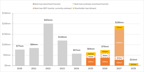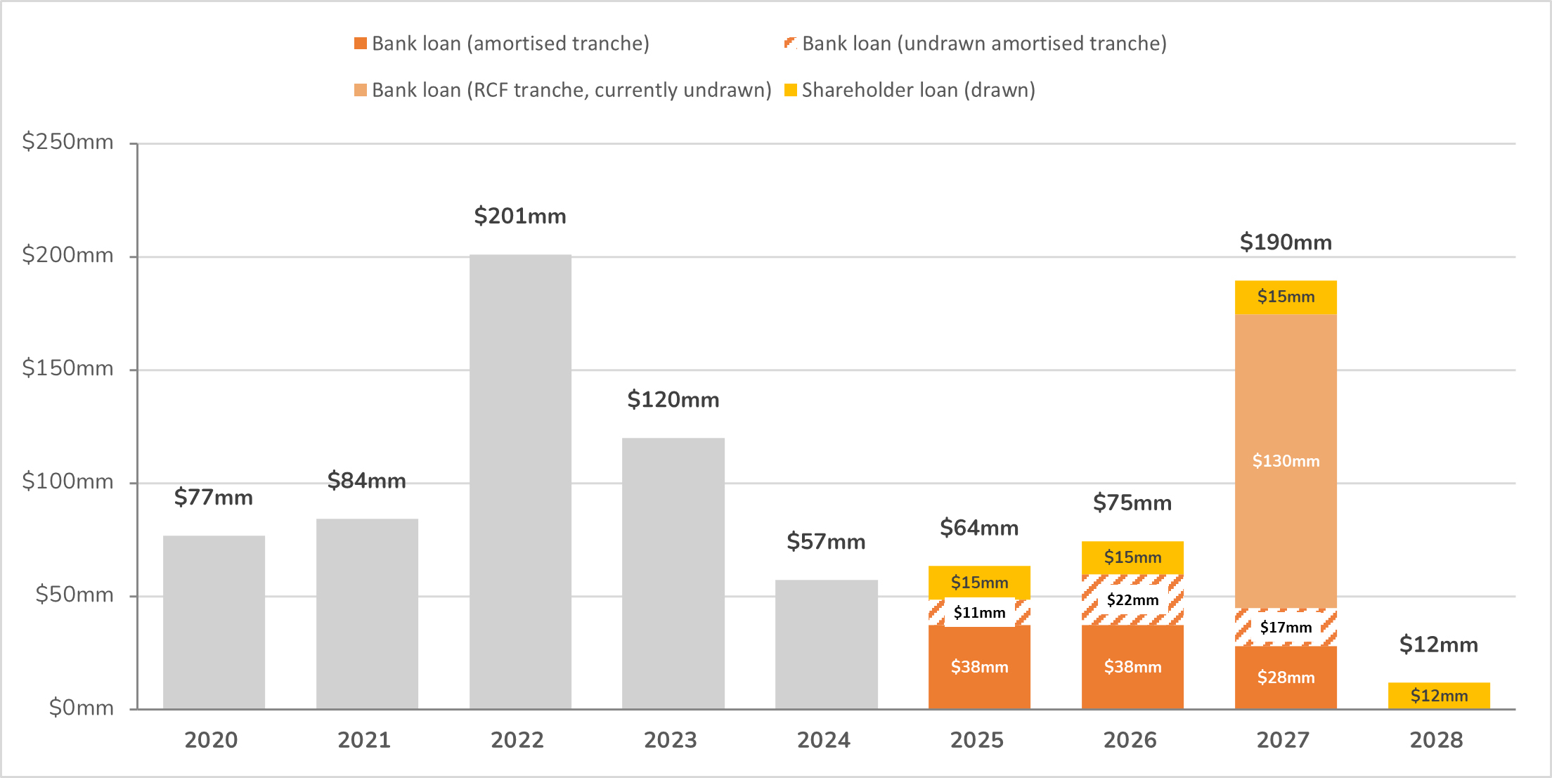 • $50 million undrawn from the amortised loan (available until January 2026); and