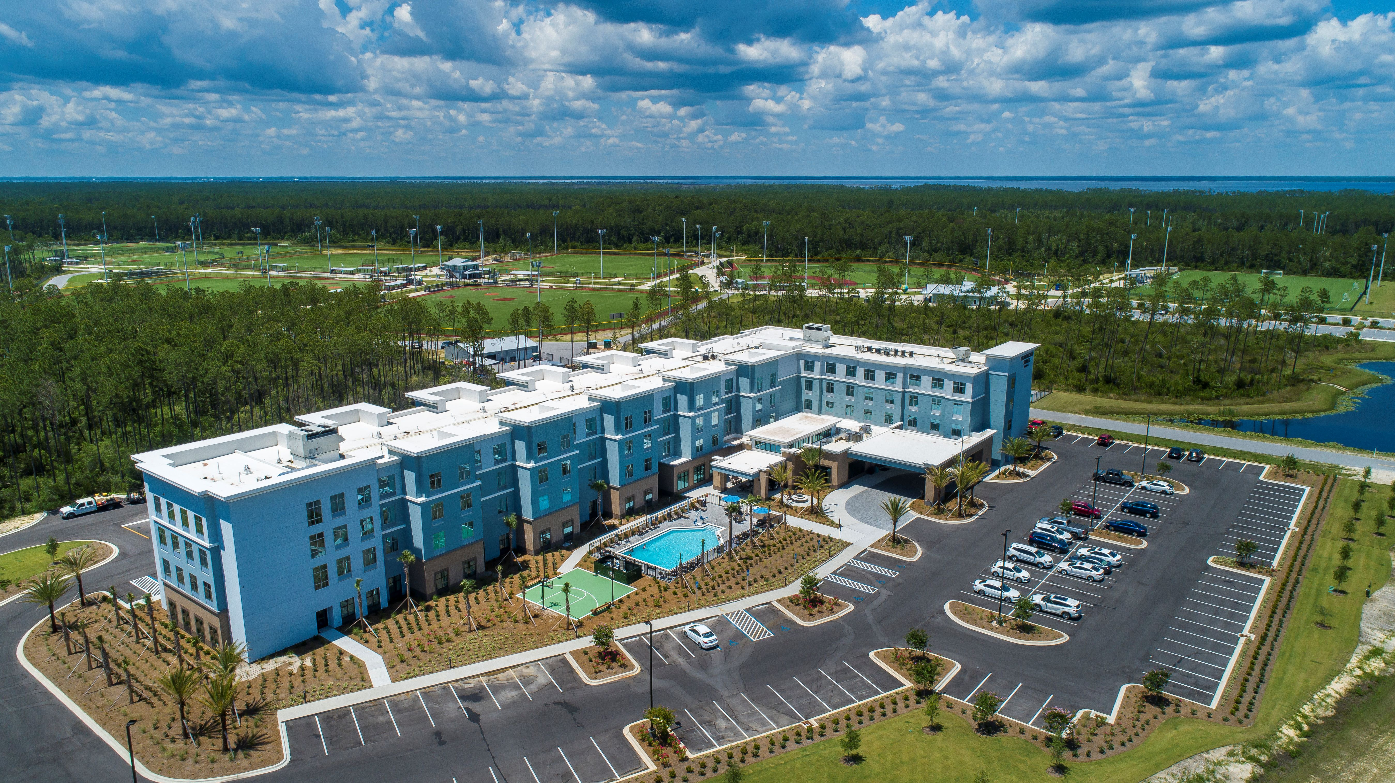 Homewood Suites PCB opened in 2022 and features 131 one- and two-bedroom guest suites, each equipped with a full kitchen and refrigerator. Amenities include a swimming pool, fitness center and complimentary hot breakfast served seven days a week. The hotel is adjacent to the 160-acre Publix Sports Park and just minutes from the white-sand beaches of Panama City Beach.