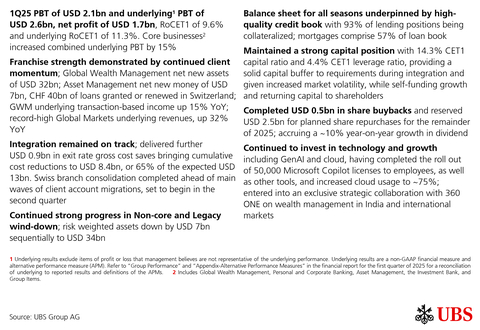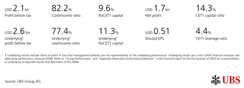 UBS reports 1Q25 net profit of USD 1.7bn with 6.2trn invested assets, demonstrating franchise strength and executing integration at pace (Ad hoc announcement pursuant to Article 53 of the SIX Exchange Regulation Listing Rules)