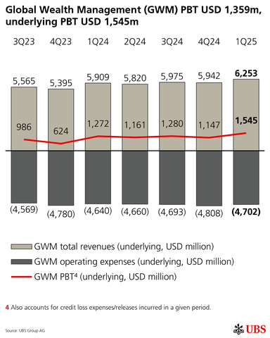 Global Wealth Management (GWM) PBT USD 1,359m, underlying PBT USD 1,545m