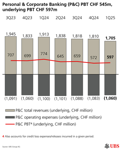 Personal & Corporate Banking (P&C) PBT CHF 545m, underlying PBT CHF 597m