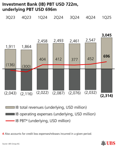 Investment Bank (IB) PBT USD 722m, underlying PBT USD 696m