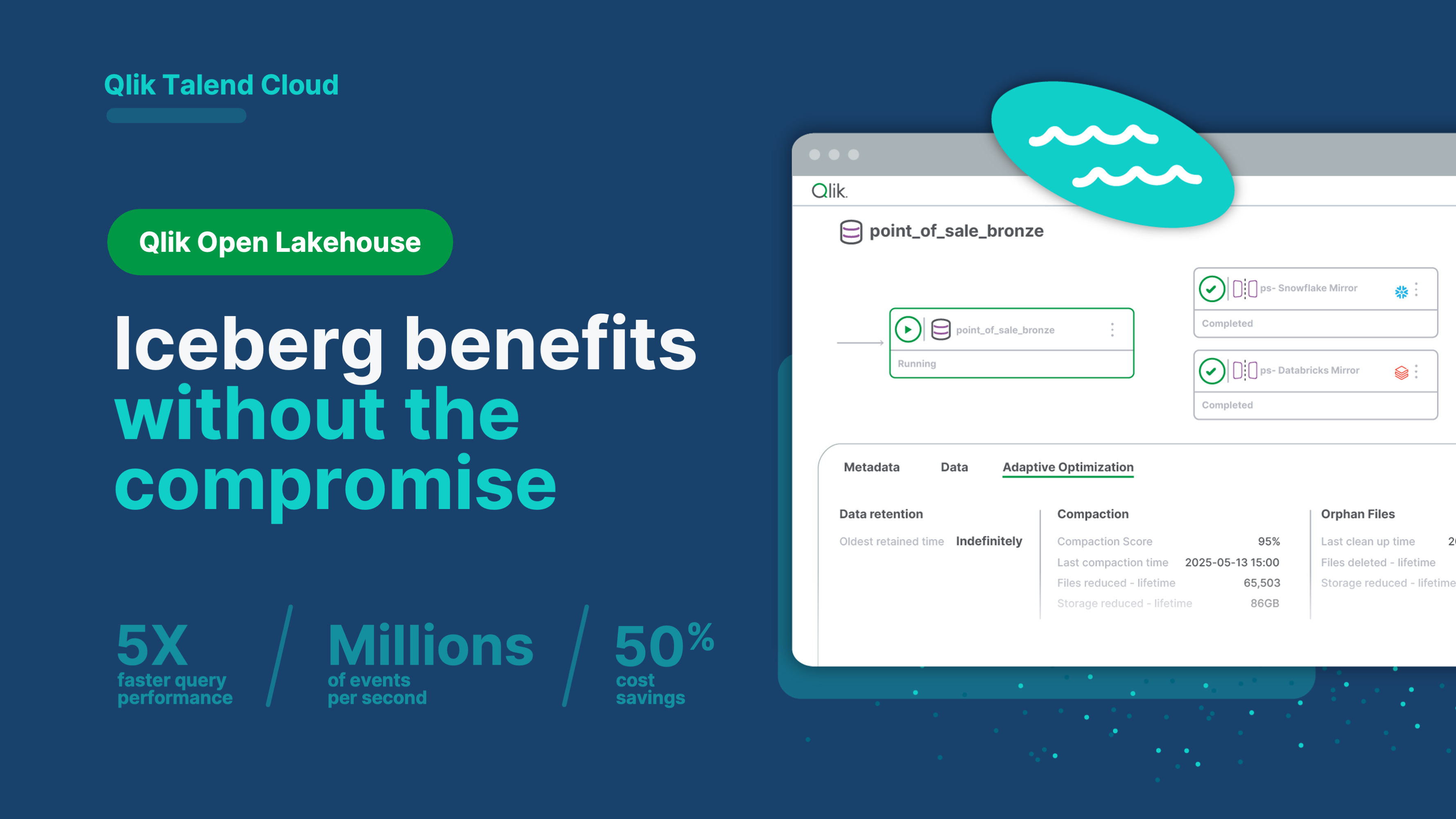 ORLANDO, Fla.--(BUSINESS WIRE)--Qlik®, een wereldwijde leider op het gebied van gegevensintegratie, -kwaliteit, analyse en kunstmatige intelligentie, kondigde vandaag de lancering aan van Qlik Open Lakehouse, een volledig beheerde Apache Iceberg-oplossing die in Qlik Talend Cloud is geïntegreerd. Qlik Open Lakehouse, ontworpen voor bedrijven die onder druk staan om sneller op te schalen en minder uit te geven, levert ingestie, geautomatiseerde optimalisatie, en interoperabiliteit tussen verschillende engines zonder leveranciersafhankelijkheid of operationele kosten.