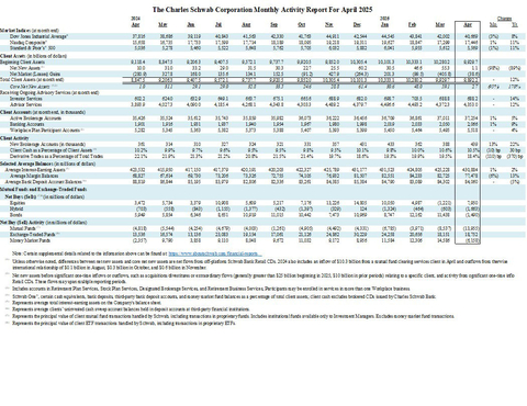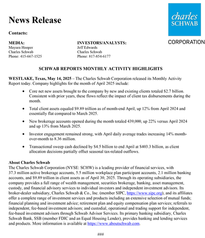 The Charles Schwab Corporation released its Monthly Activity Report today for the month of April 2025.