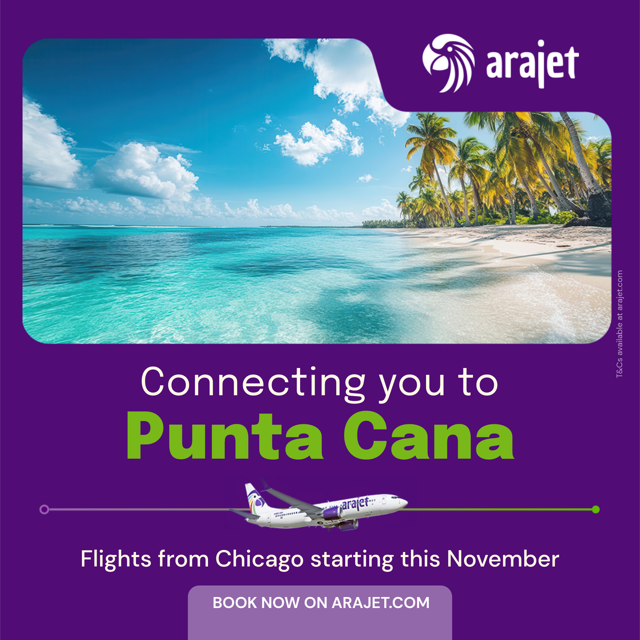 A top Dominican destination known globally for its pristine beaches, luxury resorts, and year-round sunshine, Punta Cana also serves as a strategic link in Arajet’s broader network to seamlessly connect travelers to Arajet’s 13 onward destinations across the Caribbean and Latin America. Travelers from Chicago will benefit from Arajet’s fuel-efficient fleet, low-cost fares, and nonstop service to the heart of the Caribbean.