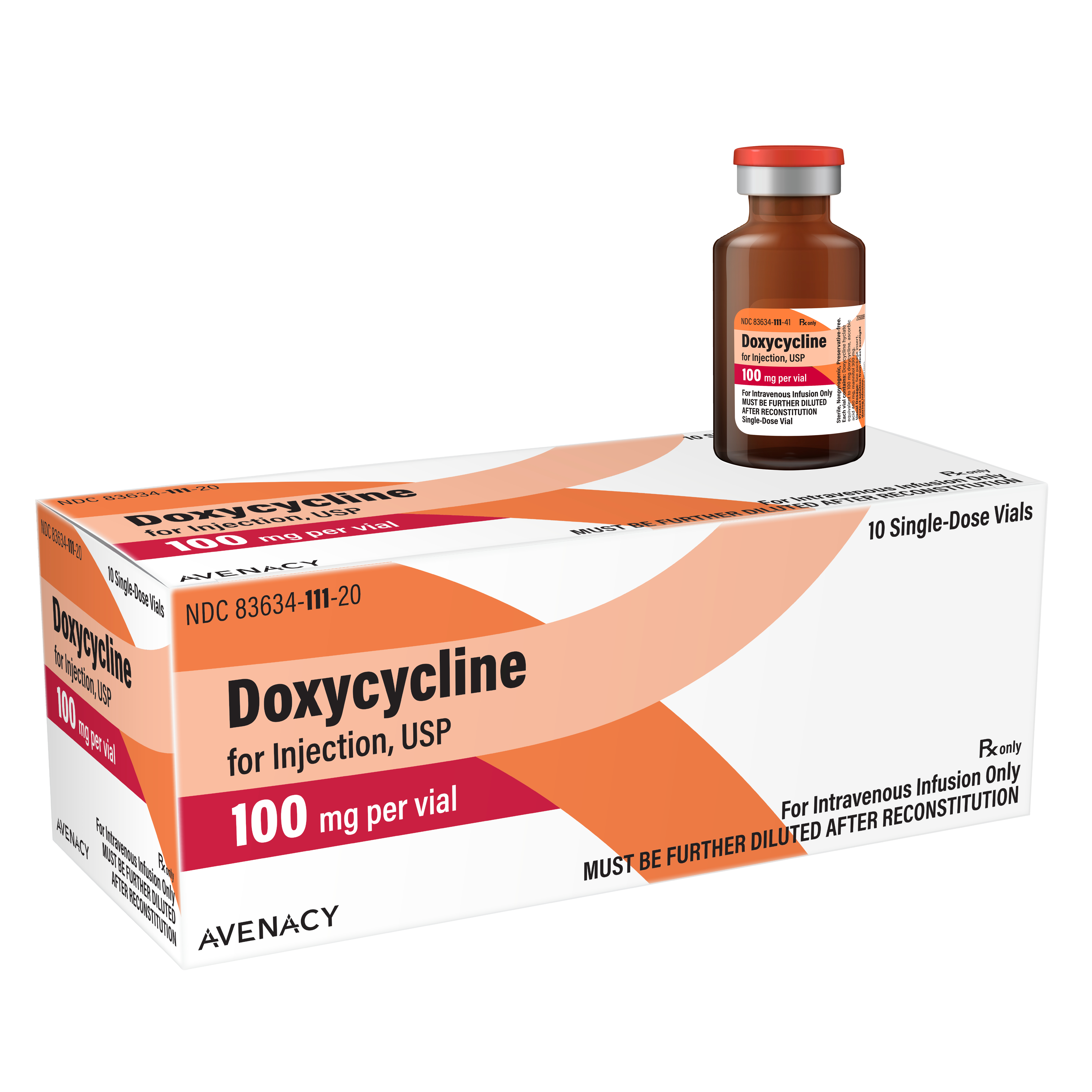 Avenacy’s Doxycycline for Injection, USP is available in 100 mg single-dose vials, sold as a 10-pack. In line with Avenacy’s mission to champion patient safety and streamline patient care, the product features the Company’s highly differentiated packaging and labeling to support accurate medication selection.