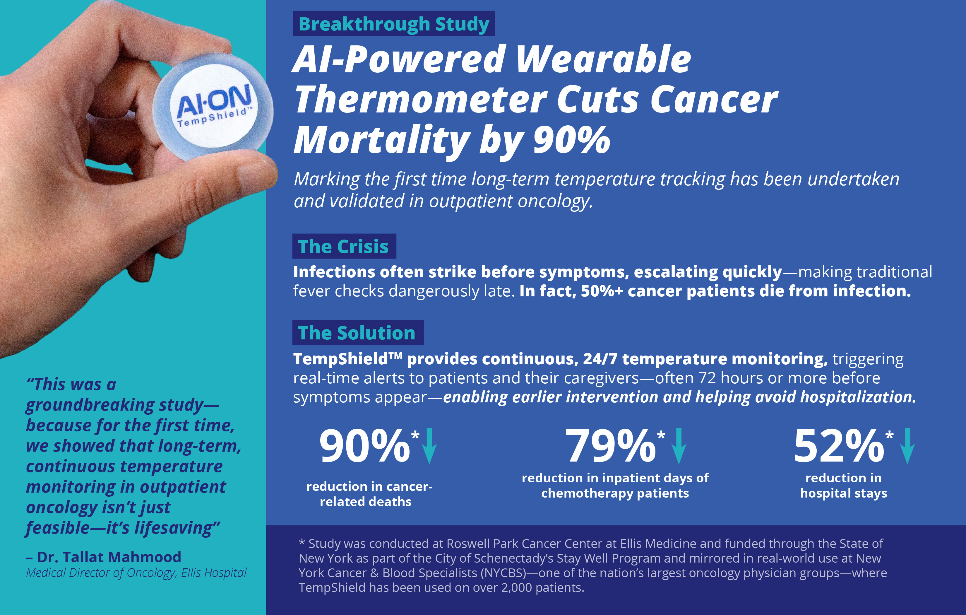 “TempShield gave us a critical head start in detecting infections—allowing timely intervention, avoiding serious complications, and saving lives,” said Dr. Tallat Mahmood, Medical Director at Roswell Park Cancer Center at Ellis Medicine. “This study shows that long-term temperature monitoring benefits not just high-risk patients, but all chemotherapy patients.”