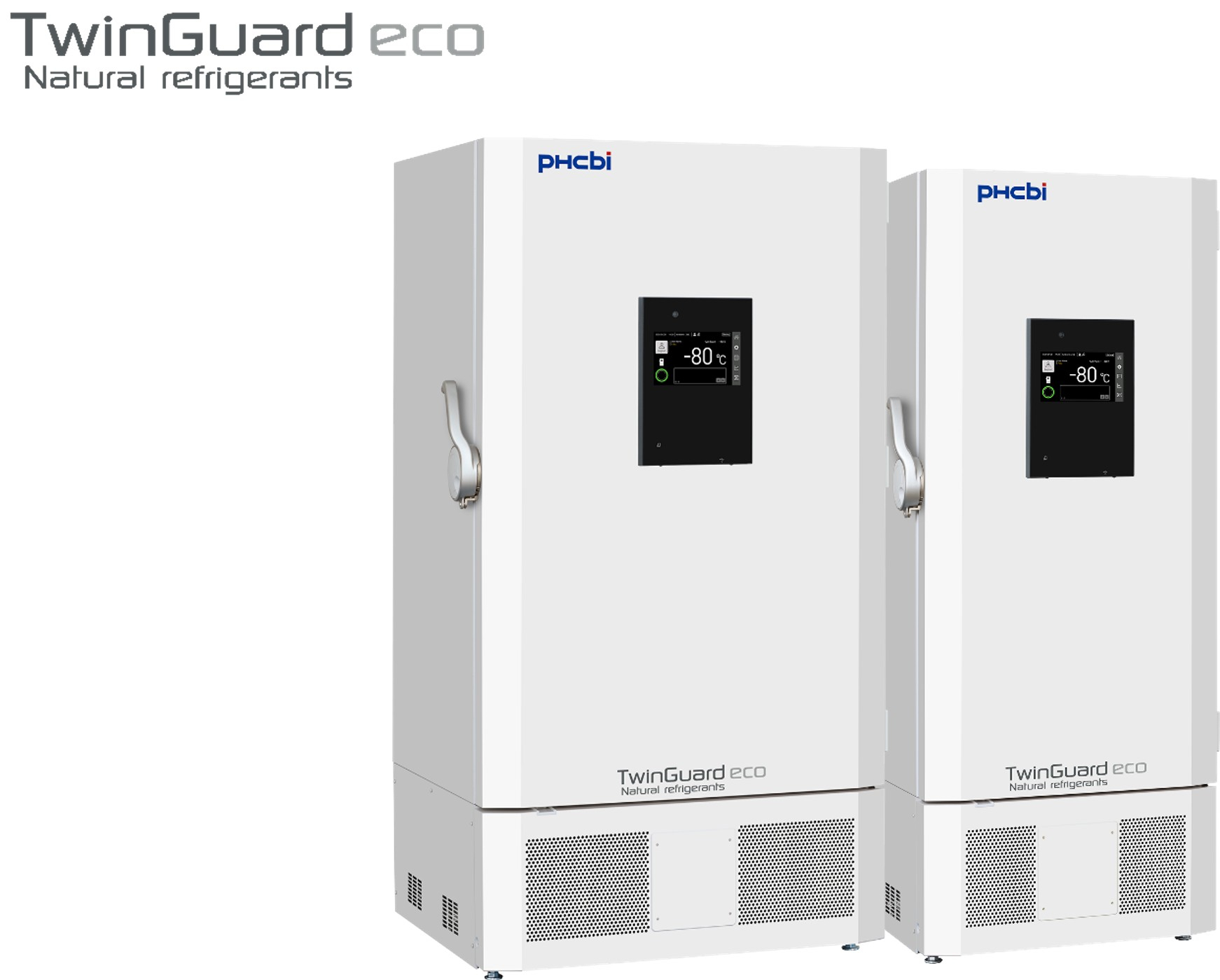 このたび開発した「TwinGuard ECO」は、PHCbiが長年培ってきた精緻な温度制御技術の活用により冷却性能が向上した2つの独立冷凍回路の搭載によって、生体試料や医薬品をより安心して長期保存できるだけでなく、冷媒のノンフロン化と消費電力の大幅な削減を通じて地球環境負荷低減にも貢献するノンフロン超低温フリーザーです。