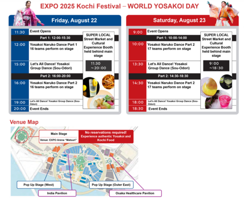 高知县将于8月22日(周五)和23日(周六)在2025年关西大阪世博会期间的世博竞技场“Matsuri”举办“世界YOSAKOI日”活动。