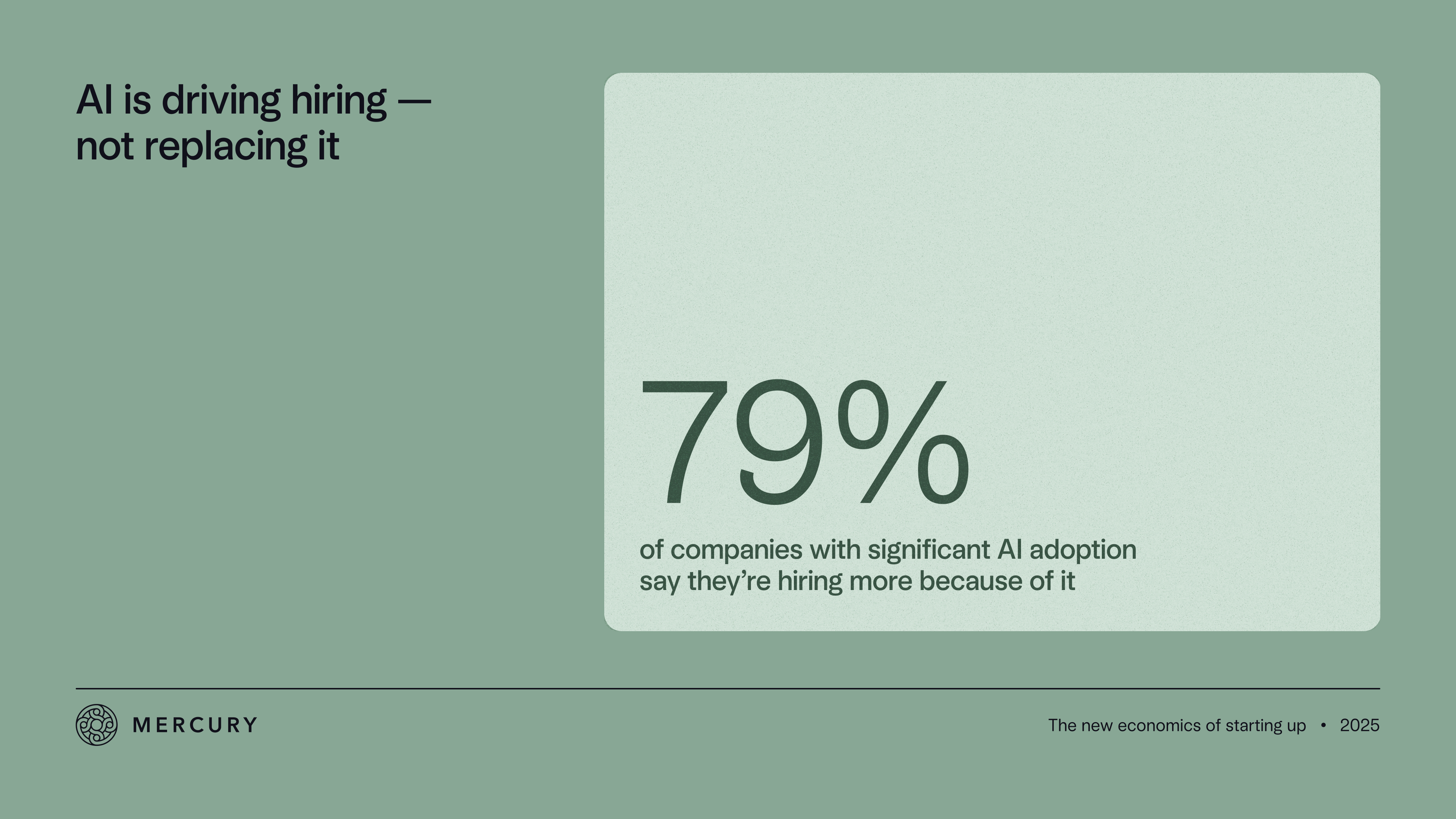 - And among startups with significant AI adoption, 79% say they’re hiring more because of AI.