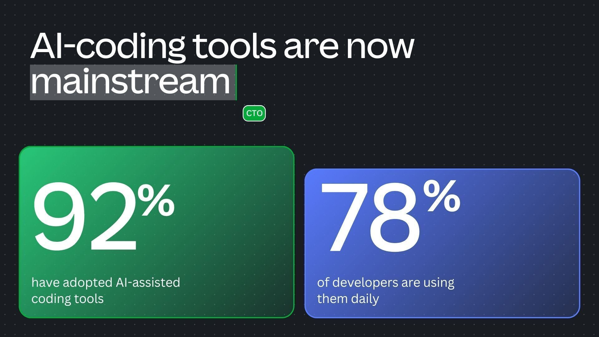 - AI adoption is nearly universal. Ninety-two percent report using AI-assisted coding tools, with 78% of developers relying on them every day. Adoption is set to accelerate further, as two-thirds (66%) expect their organization’s use of AI coding to increase significantly over the next 12 months, with productivity gains cited by 64% as the primary driver.