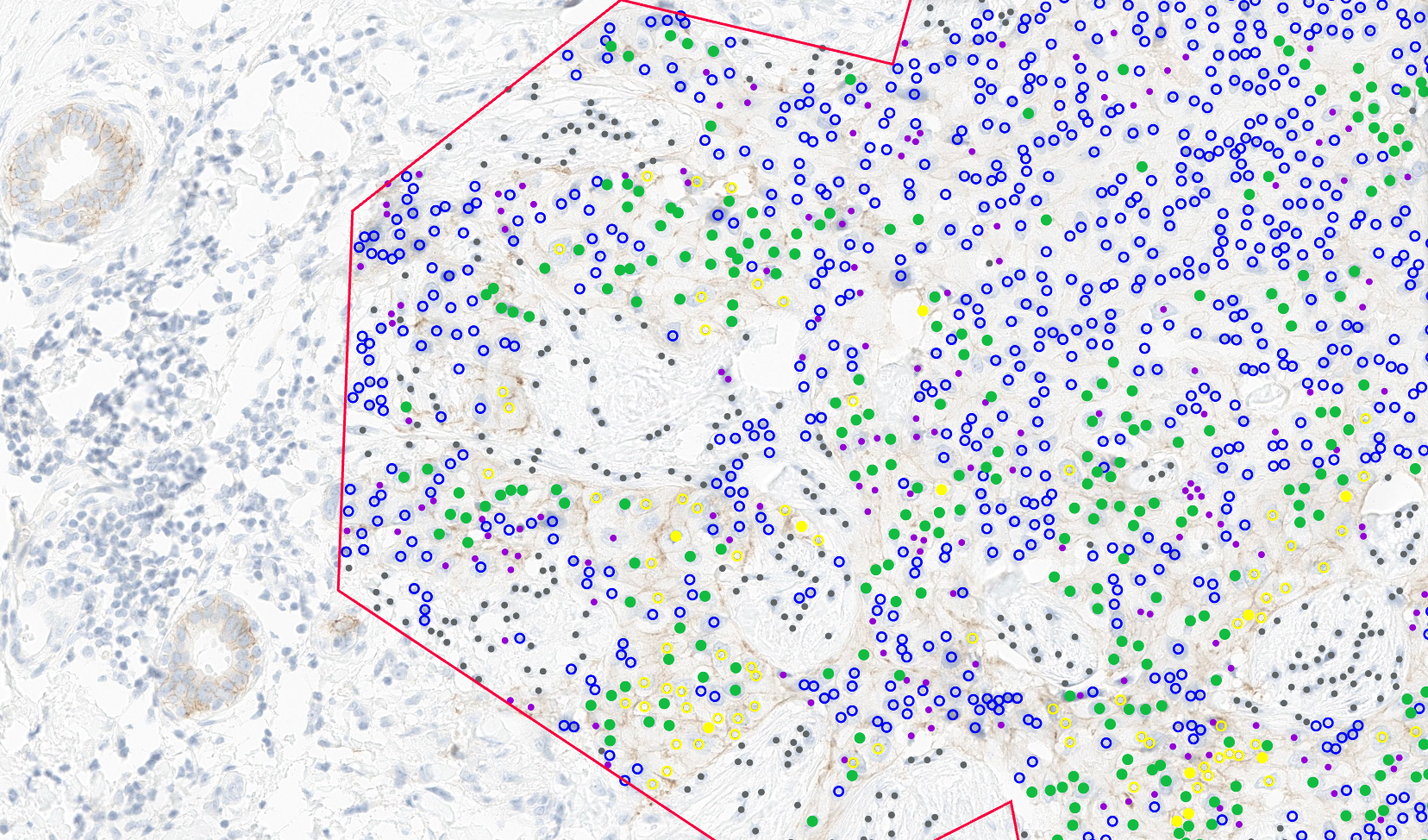 - Visualization of AI findings and cell staining pattern percentages for better understanding of score result