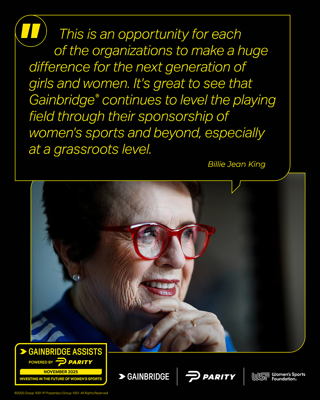 Gainbridge®, Parity, and the Women’s Sports Foundation® Award $222,000 in Grants to 32 Organizations and Athletes Through Third Annual Gainbridge® Assists
