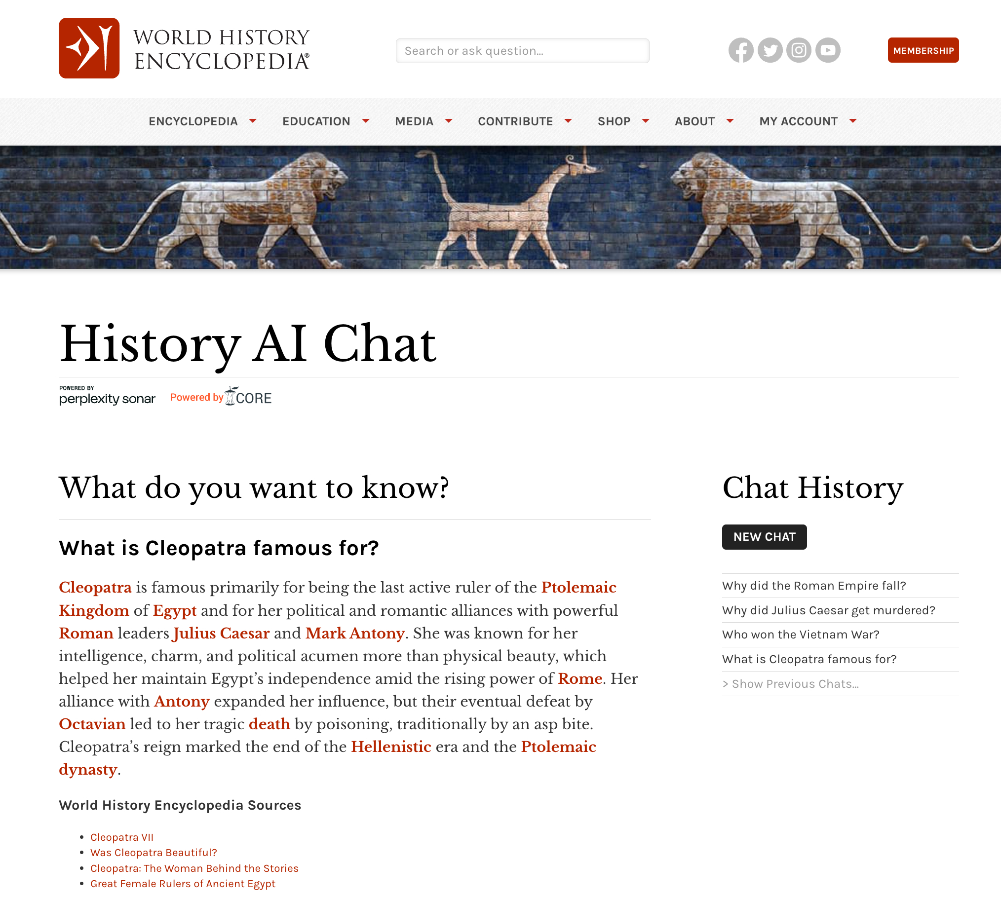 With over 420 million peer-reviewed historical documents and resources, World History Encyclopedia’s AI Chat now makes it easier for students to sift through those resources to find answers to their questions.