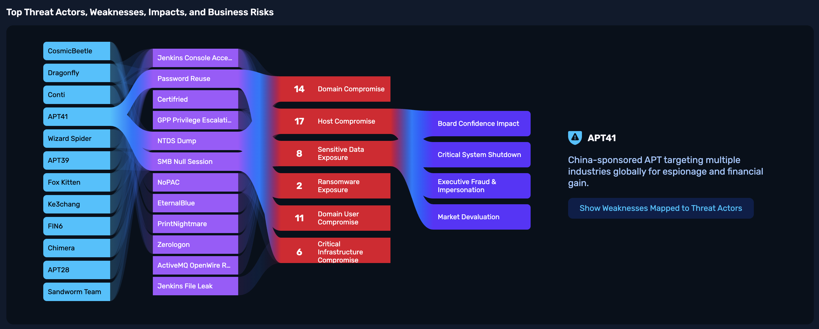 - Exploits to business risk: Attack chains show how a single weakness can lead to domain compromise, data theft, or ransomware, with clear links to financial fraud, regulatory exposure, or loss of operations.