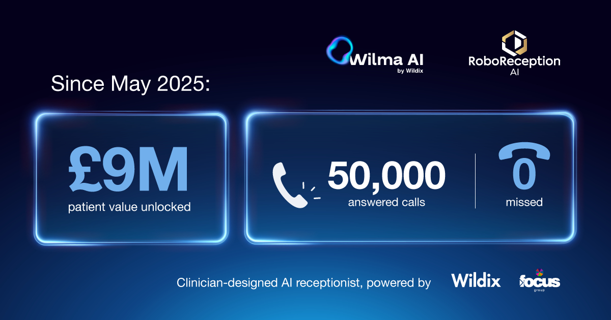 LONDON--(BUSINESS WIRE)--Wildix, a global leader in AI-powered business communications solutions, and RoboReception, one of the UK’s fastest-growing healthcare software providers, today announced results from an AI rollout reshaping patient access and practice economics. Since May 2025, the joint 24/7 AI receptionist has answered over 50,000 patient calls with zero missed, converting them into £9 million in new patient revenue and returning more than 2,000 hours to clinical care.