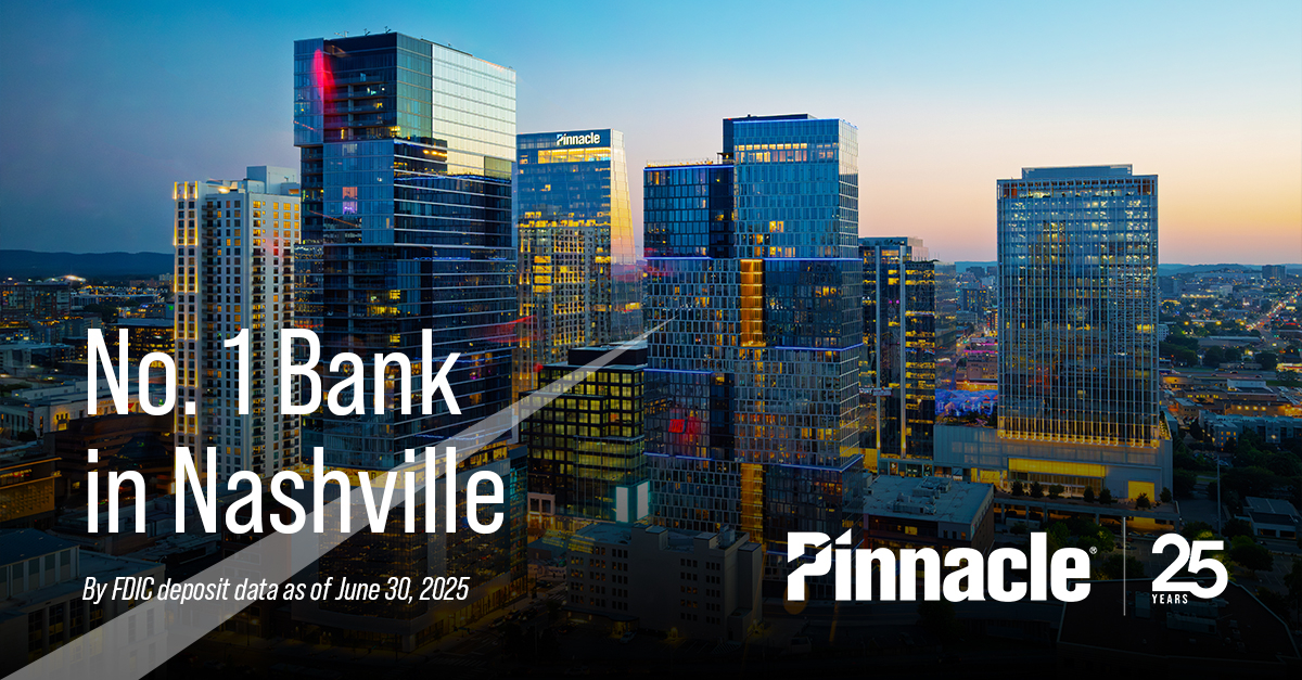 “Pinnacle is and will remain Nashville’s hometown bank, and this data drives home just how much Tennessee trusts and relies on us for financial safe keeping,” said Pinnacle President and CEO Terry Turner. “We’ve worked for 25 years to build a track record of delivering unmatched local service, and our capabilities have grown substantially more sophisticated. It’s an experience that clients literally cannot get anywhere else and has proven effective everywhere we’ve taken it across the Southeast. We fully intend to continue delivering it into the next leg of this race.”