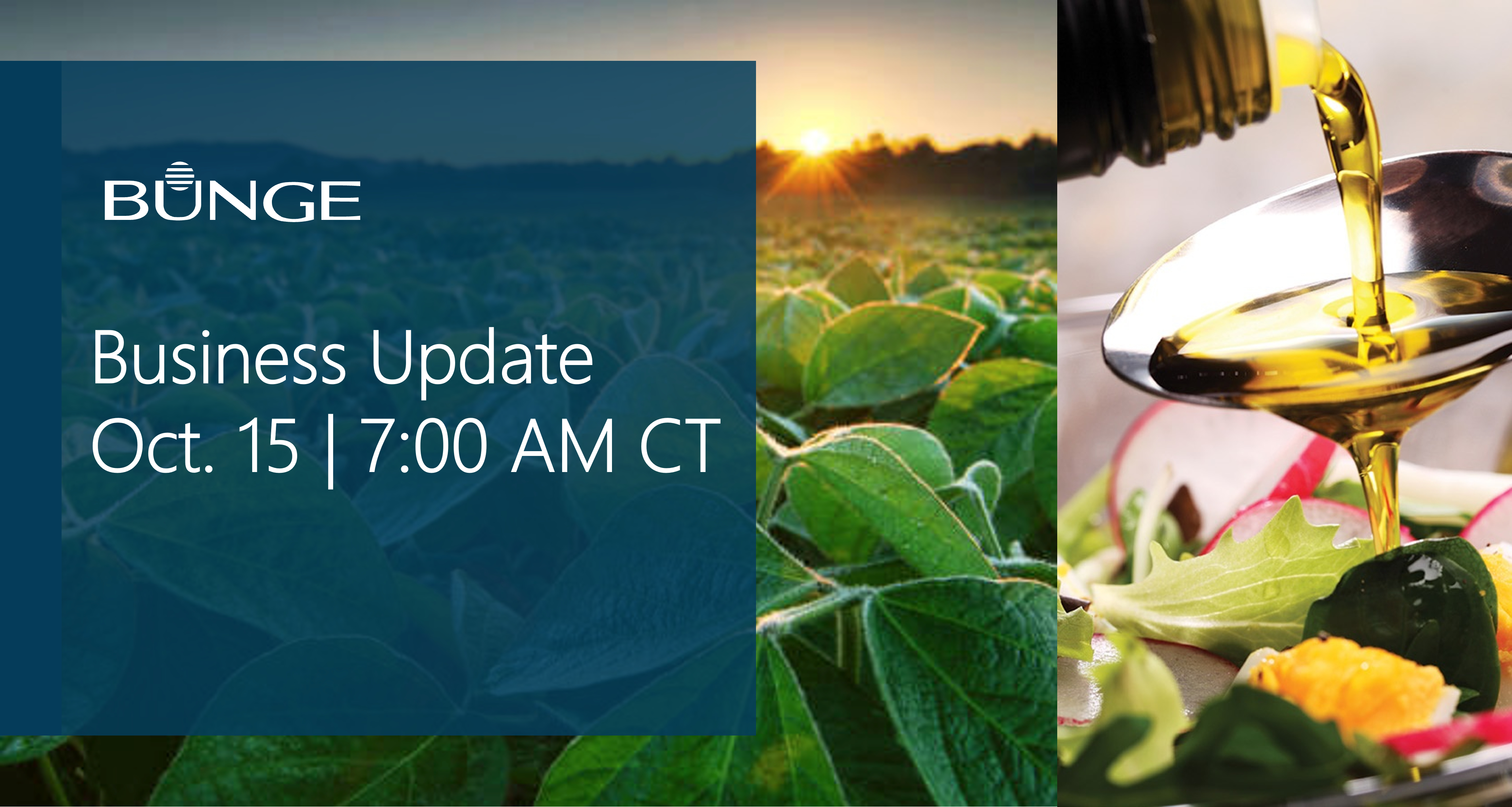 ST. LOUIS--(BUSINESS WIRE)--Bunge Global SA (NYSE: BG) will provide a business update on Wednesday, Oct. 15, prior to the market opening. The update will address changes to the company’s 2025 outlook and reporting segments resulting from Bunge’s combination with Viterra. Company management will also host a conference call at 7 a.m. Central Time to discuss the changes. A slide presentation to accompany the update will be posted at www.bunge.com.