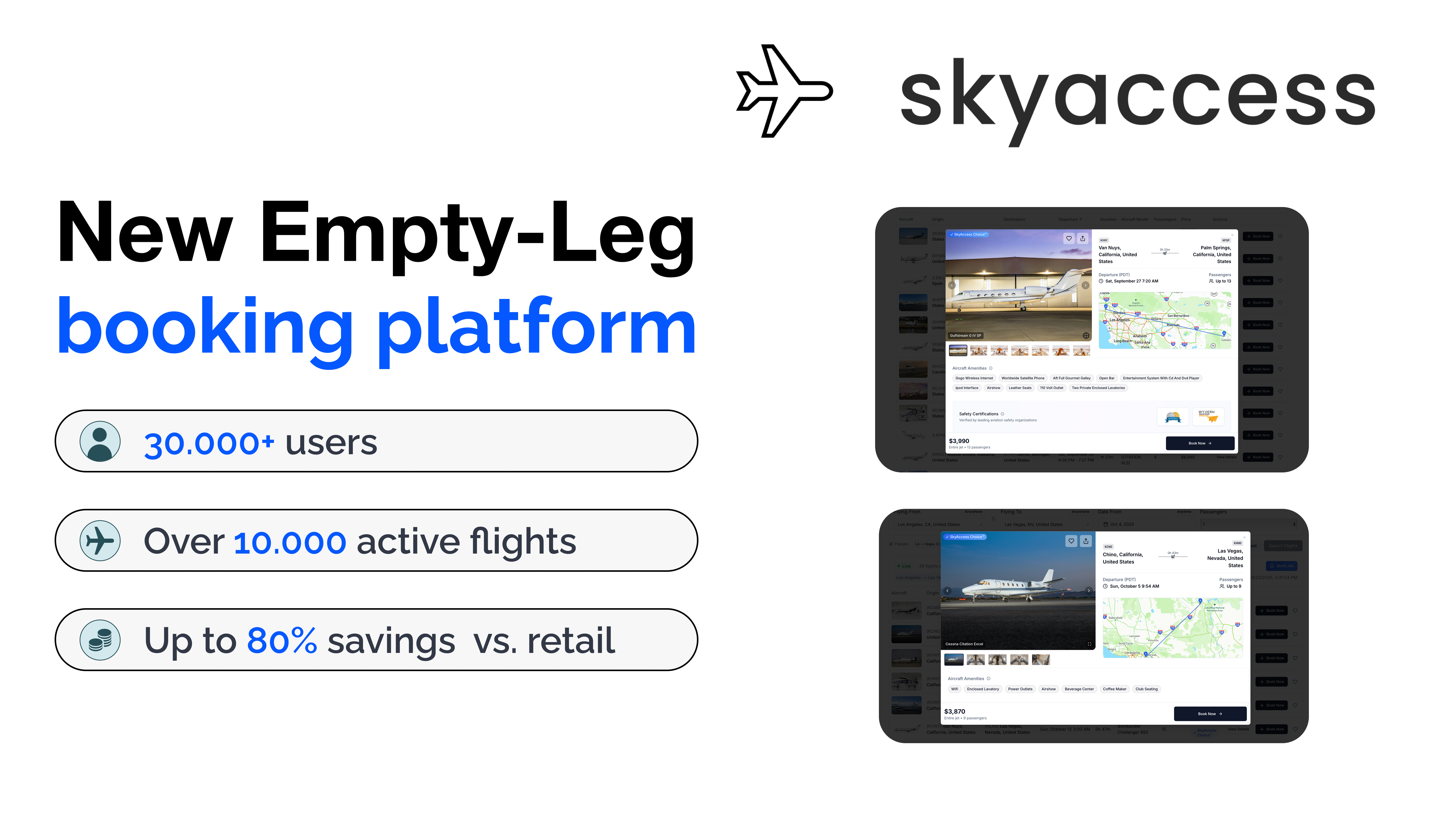 LOS ANGELES--(BUSINESS WIRE)--SkyAccess, a Los Angeles-based technology company, today announced the public launch of its booking platform for private-jet empty-leg flights, making tens of thousands of flights worldwide accessible to travelers that were previously hidden behind broker networks or internal operator systems. The platform transforms one of aviation’s largest inefficiencies — repositioning flights flown without passengers — into a transparent marketplace for last-minute private-jet travel.