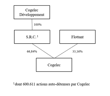 A la date du Projet de Note d’Information, Cogelec Développement détient, elle-même indirectement à travers sa filiale à 100% S.R.C., 5.347.065 Actions et 10.694.130 droits de vote de la Société (représentant 60,09% du capital et 75,07% des droits de vote théoriques de la Société).