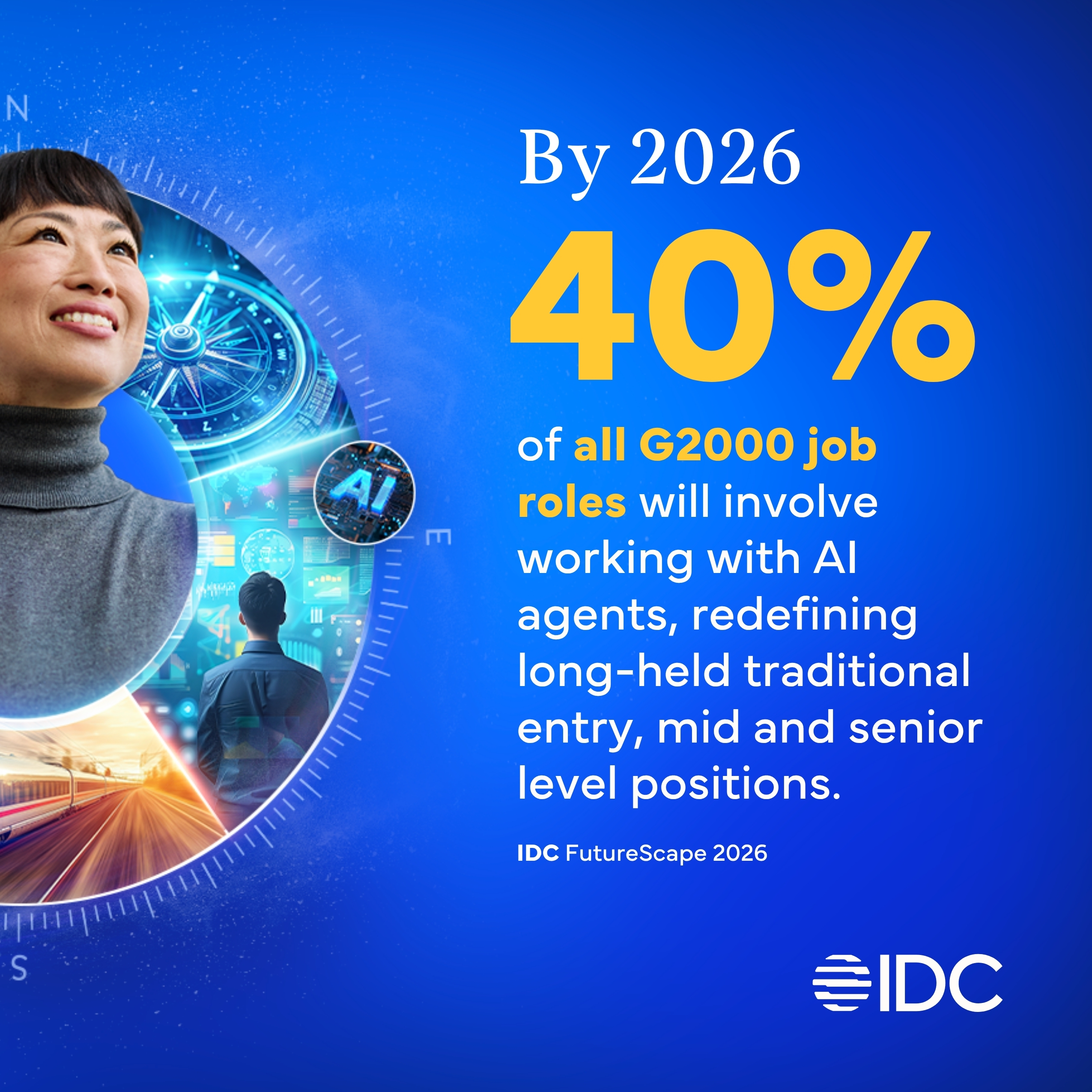 - Job Role Shift: By 2026, 40% of all G2000 job roles will involve working with AI agents, redefining long-held traditional entry, mid and senior level positions.