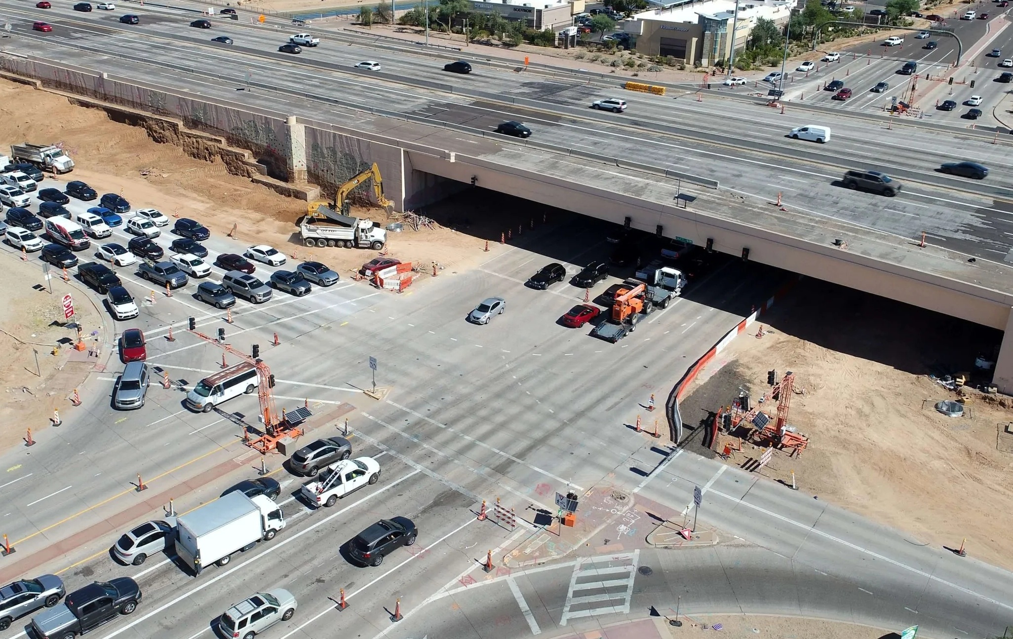 Temporary signal and pedestrian systems maintained safe, efficient traffic flow—over 100,000 vehicles per day—during construction between signal removal and replacement.