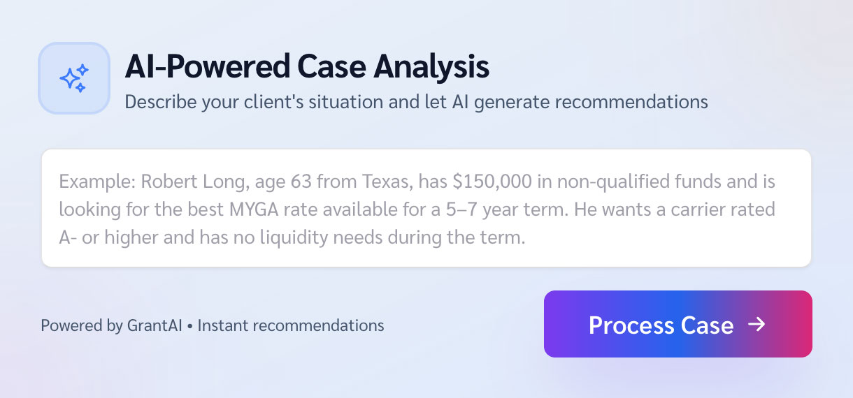 GrantAI is powered by AGT’s proprietary data infrastructure, connected to the precise calculators, comparison, simulation, and illustration tools of Annuities Genius.