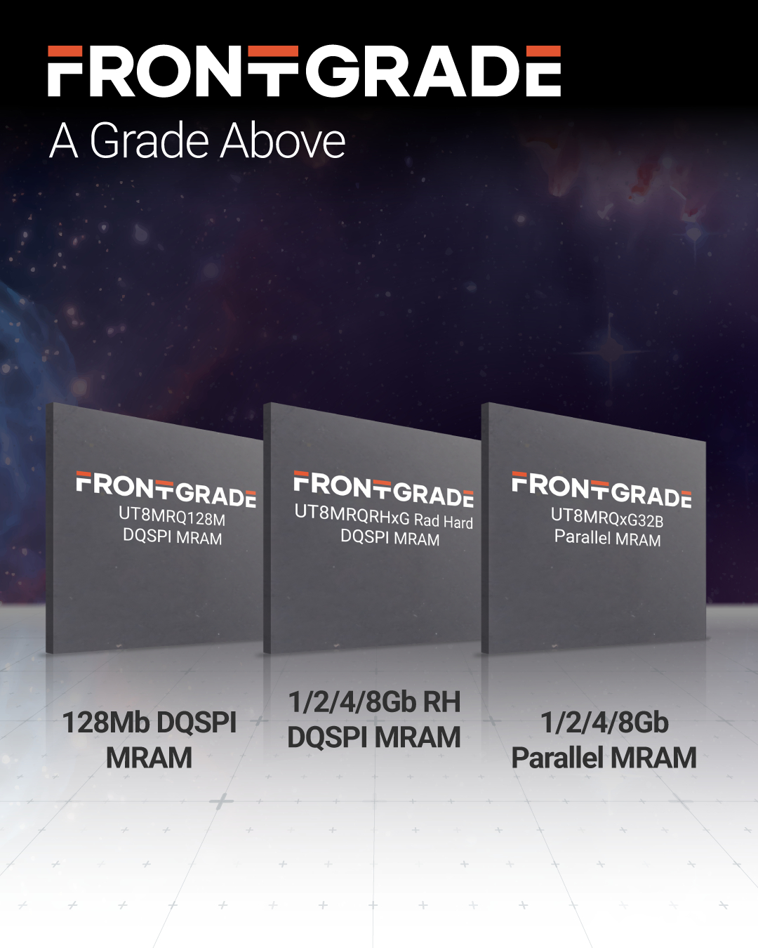 COLORADO SPRINGS, Colo.--(BUSINESS WIRE)--Frontgrade™ Technologies, a leading provider of high-reliability electronic solutions for space and national security missions, today announced the expansion of its Magnetoresistive Random Access Memory (MRAM) product line. The expanded MRAM family now includes two new series, the Dual Quad Serial Peripheral Interface (Dual QSPI) series and the Parallel series, offering a comprehensive range of high-speed, non-volatile memory solutions designed for aerospace, defense, and industrial applications. These products provide exceptional reliability and efficiency in systems where data integrity and mission assurance are paramount.