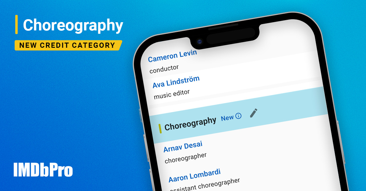 IMDb has added 12 new dedicated professional credit categories on IMDb and IMDbPro name and title pages, advancing recognition for essential entertainment professions. Credit categories are the sections in which professional credits are displayed on IMDb and IMDbPro name and title pages. The new categories are: Choreography; Color Department; Craft Services; Health and Safety Department; Intimacy Coordination; Legal; Production Department; Production Finance and Accounting; Property Department; Publicity; Puppetry; and Voice Actor - Dubbing. Previously, these existing credits were primarily listed in the "Additional Crew" category.
