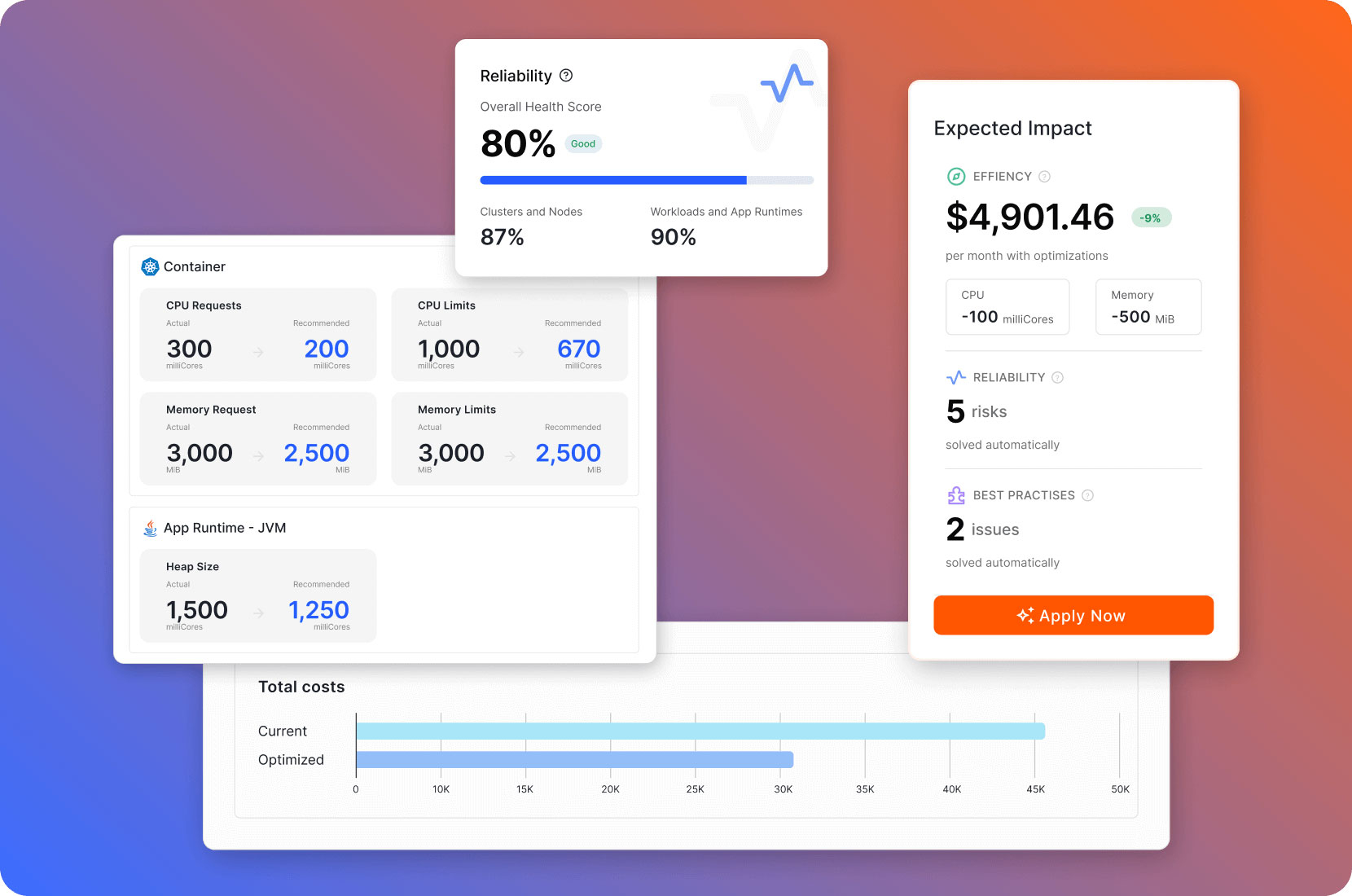 It then provides ready-to-apply recommendations that allow developers, SREs, and platform engineers to align on safe, data-backed optimizations.