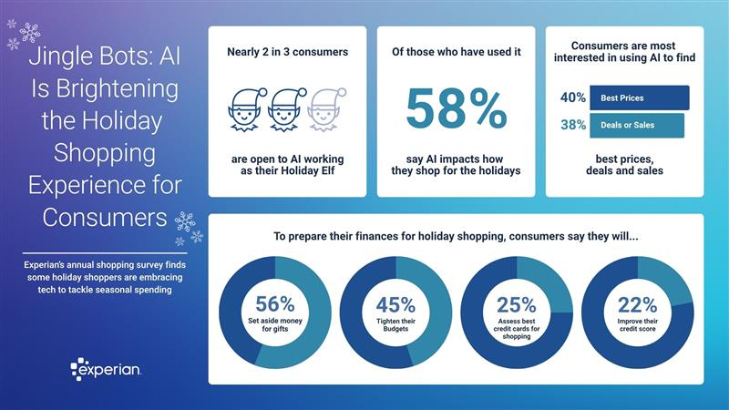 COSTA MESA, Calif.--(BUSINESS WIRE)--Holiday shoppers are decking the halls with digital help this year, as artificial intelligence (AI) emerges as an ally in navigating seasonal spending. According to a national consumer survey from Experian®, AI tools are making the holiday shopping process easier, more enjoyable, and potentially more budget-friendly with 58 percent of survey respondents who have used AI reporting a significant impact on the way they plan and shop for the holiday season.
