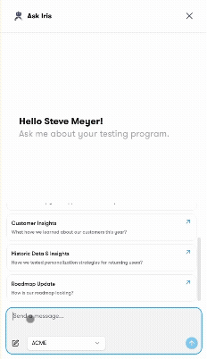 Ask Iris allows users to engage with their experimentation data through simple, conversational queries such as: