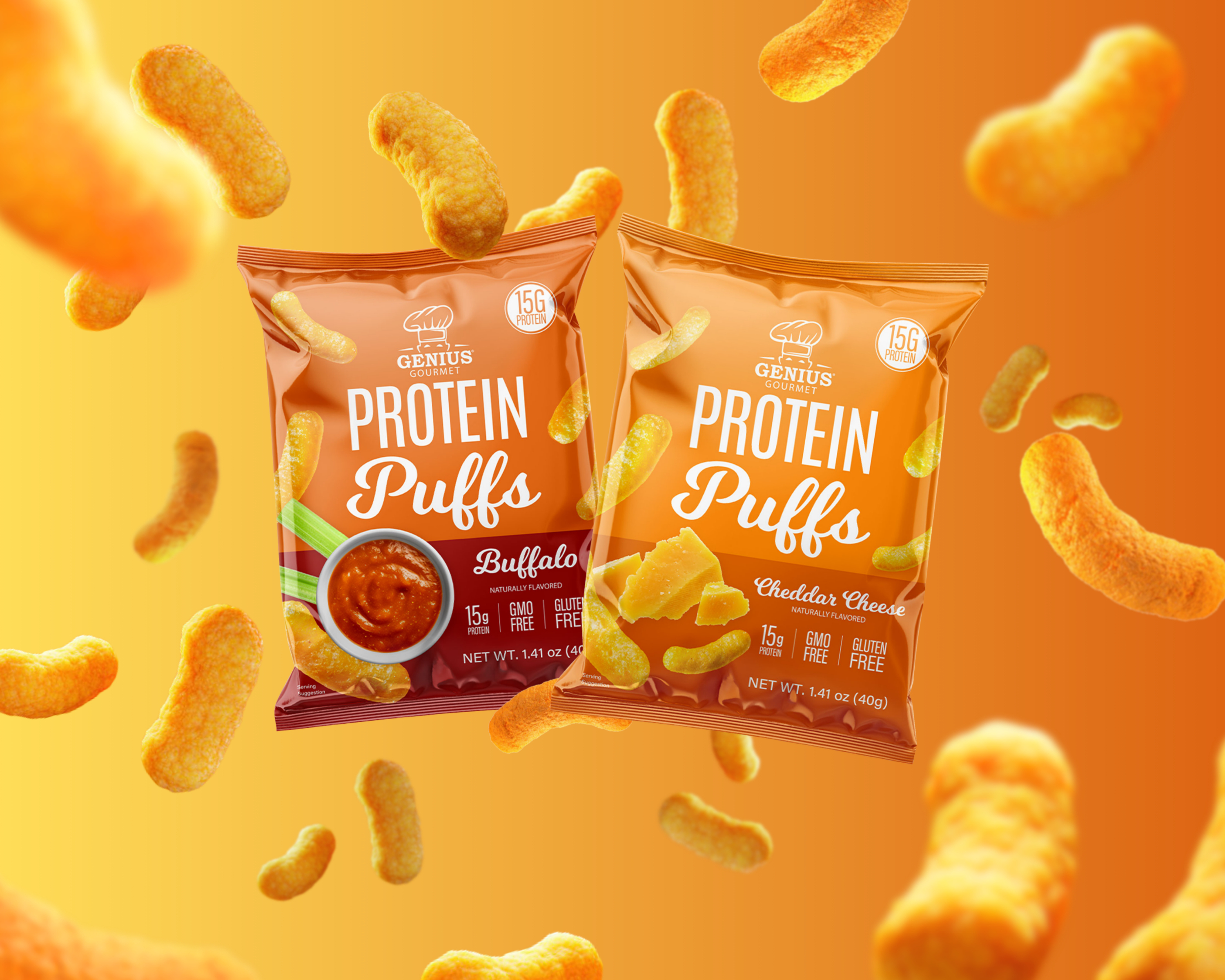Genius Gourmet, a leading innovator in better-for-you snacks, today announced the debut of its newest product line: Genius Gourmet Protein Puffs, launching in Buffalo and Cheddar Cheese.