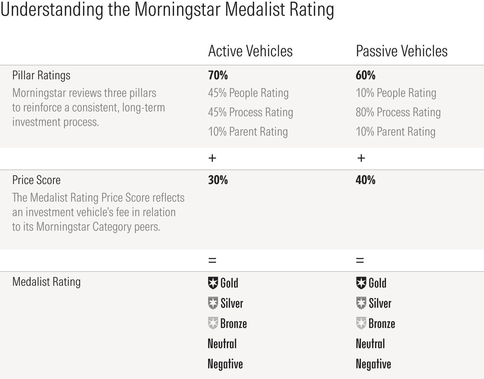 - Transparent Pillars: Quant-driven fundamental pillars (People, Process, Parent) will now include greater visibility into the underlying inputs — including new metrics like Fund Manager Successful Experience1— so investors can better understand how a Medalist Rating is determined. There will continue to be a delineation between pillar ratings that come from an analyst or algorithm.